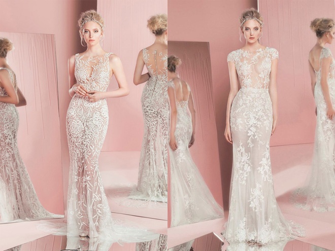 | Các thiết kế trong suốt đính hoa văn 3D là đặc điểm “nhận dạng” khó lẫn của Zuhair Murad. Trong hè năm nay, các nhà thiết kế tài hoa tiếp tục mang lại những kiểu váy cưới xuyên thấu quyến rũ theo phong cách này. Chiếc váy nào cũng giúp cô dâu mới thêm lung linh, tỏa sáng. |