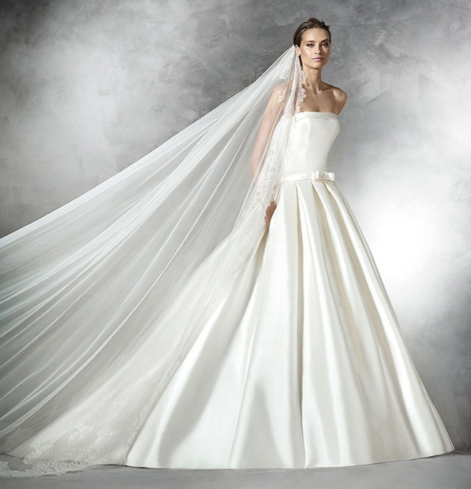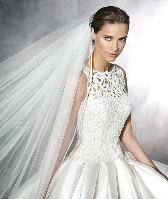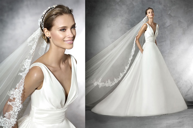 | 2. Pronovias – Váy cưới tinh tế cho nàng dâu hiện đại. Zuhair Murad tập trung vào những chi tiết thêu, đính đá quý cầu kỳ, sắc sảo trên từng milimet. Trong khi đó, các thiết kế của Pronovias lại thiên về phom dáng, đường cắt cúp và chất liệu vải đơn giản nhưng đặc biệt tinh tế. |