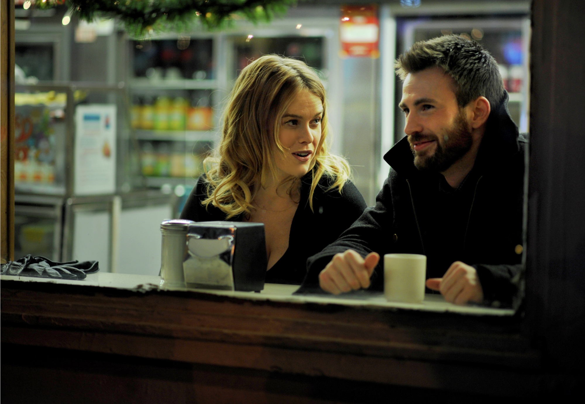 | Chris Evans bên cạnh Alice Eve trong Before We Go, bộ phim đầu tiên mà tài tử nắm giữ vai trò đạo diễn. |
