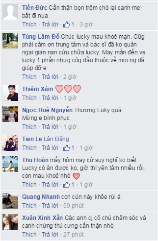 Bên cạnh đó, đoạn clip ghi lại cảnh Lucky đang ăn tại phòng khám nhận được nhiều sự quan tâm của cộng đồng mạng với 30.000 lượt xem, 5.000 lượt like (thích). Mọi người tỏ ra vui mừng và gửi lời chúc đến chú.