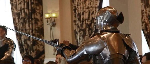 "Cuộc chiến" bắt đầu nổ ra khi linh mục hỏi: "Có ai phản đối vợ chồng kết hôn?". Một hiệp sĩ trong bộ áo giáp rút thanh kiếm yêu cầu chú rể chiến đấu với hắn để giữ tình yêu của mình. Cô dâu đưa cho chú rể thanh kiếm sẵn sàng đáp trả và Bohn đã hạ gục đối thủ.