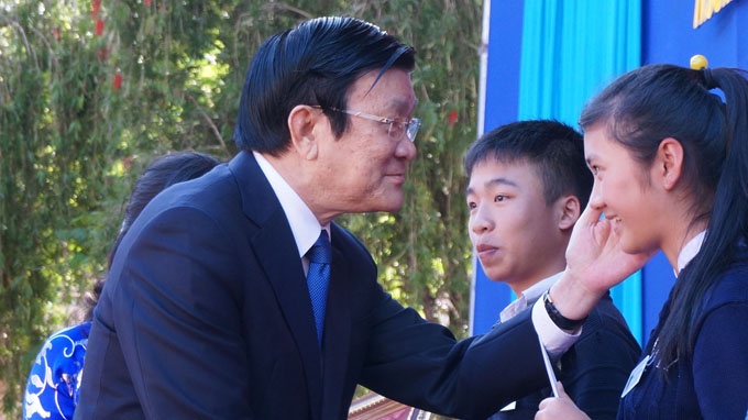 | Chủ tịch nước dặn dò học sinh Trường THPT Bùi Thị Xuân. |