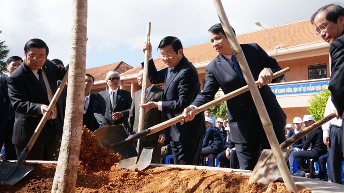 | Trồng cây lưu niệm tại khuôn viên trường. |