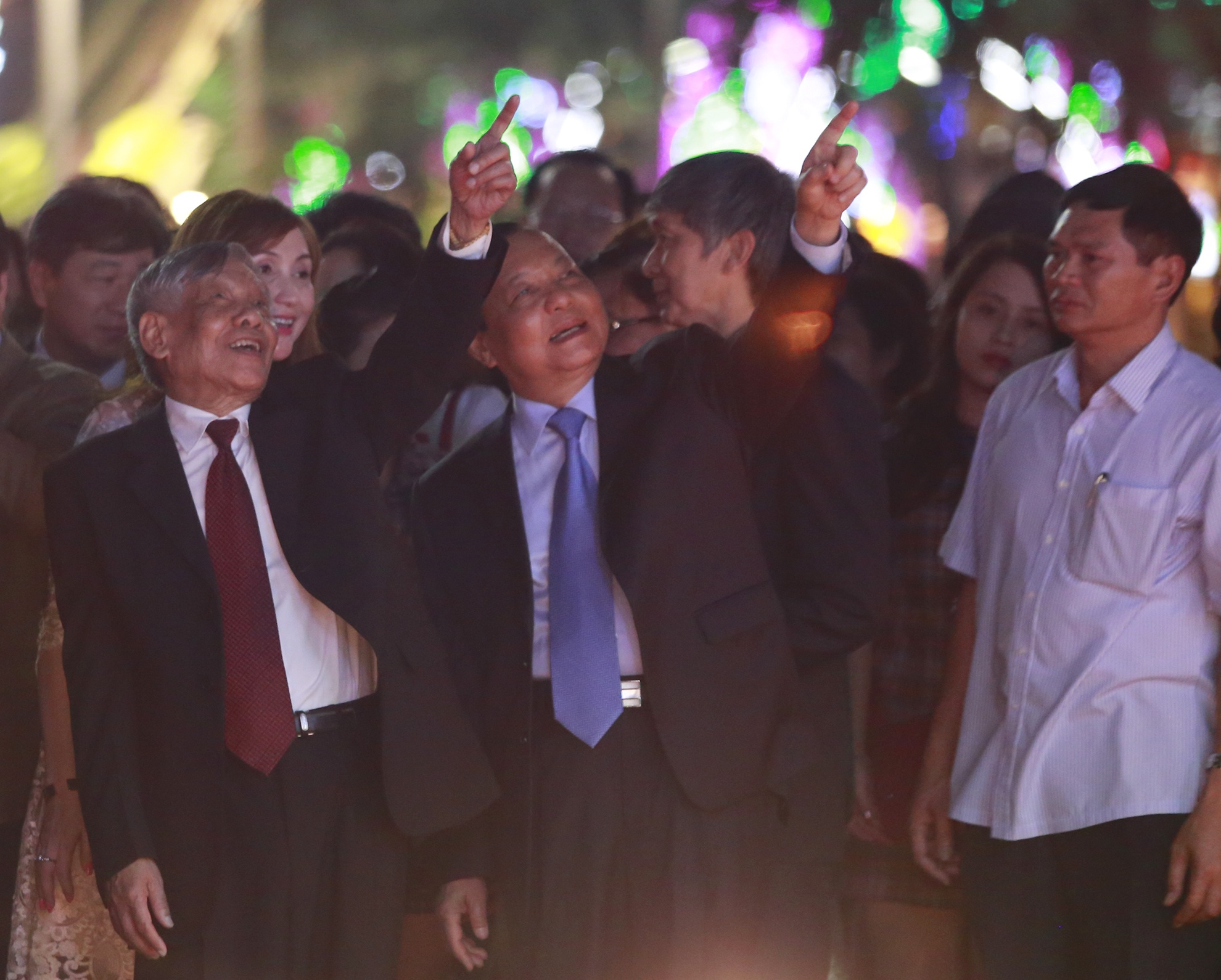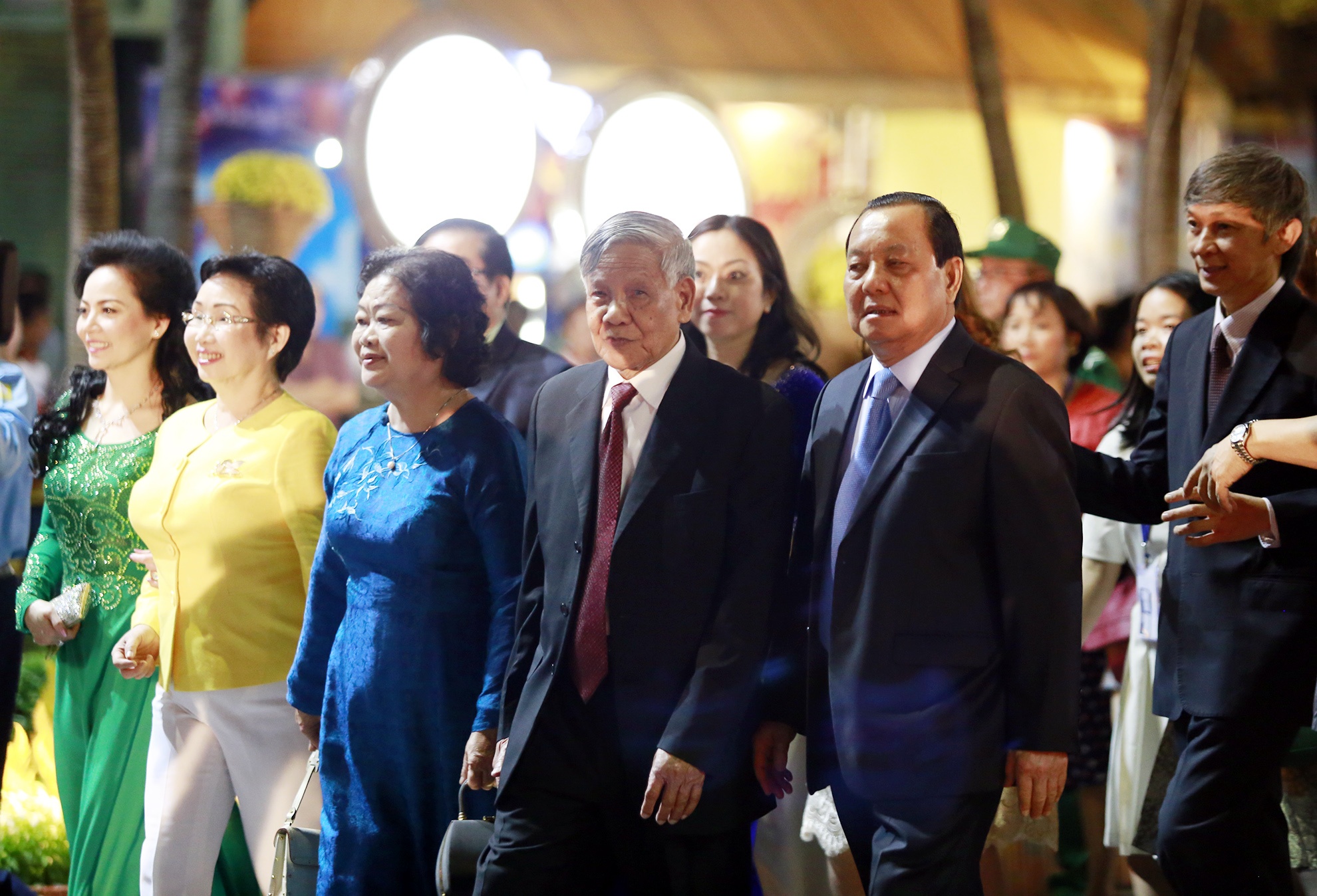 | Nguyên Tổng bí thư Lê Khả Phiêu và Bí thư Thành ủy TP.HCM Lê Thanh Hải cùng ghé thăm những cung đường của đường hoa Nguyễn Huệ. Đường hoa này sẽ mở cửa tự do đón khách tham quan đến 22h ngày 3/2 (tức mùng 4 Tết). |