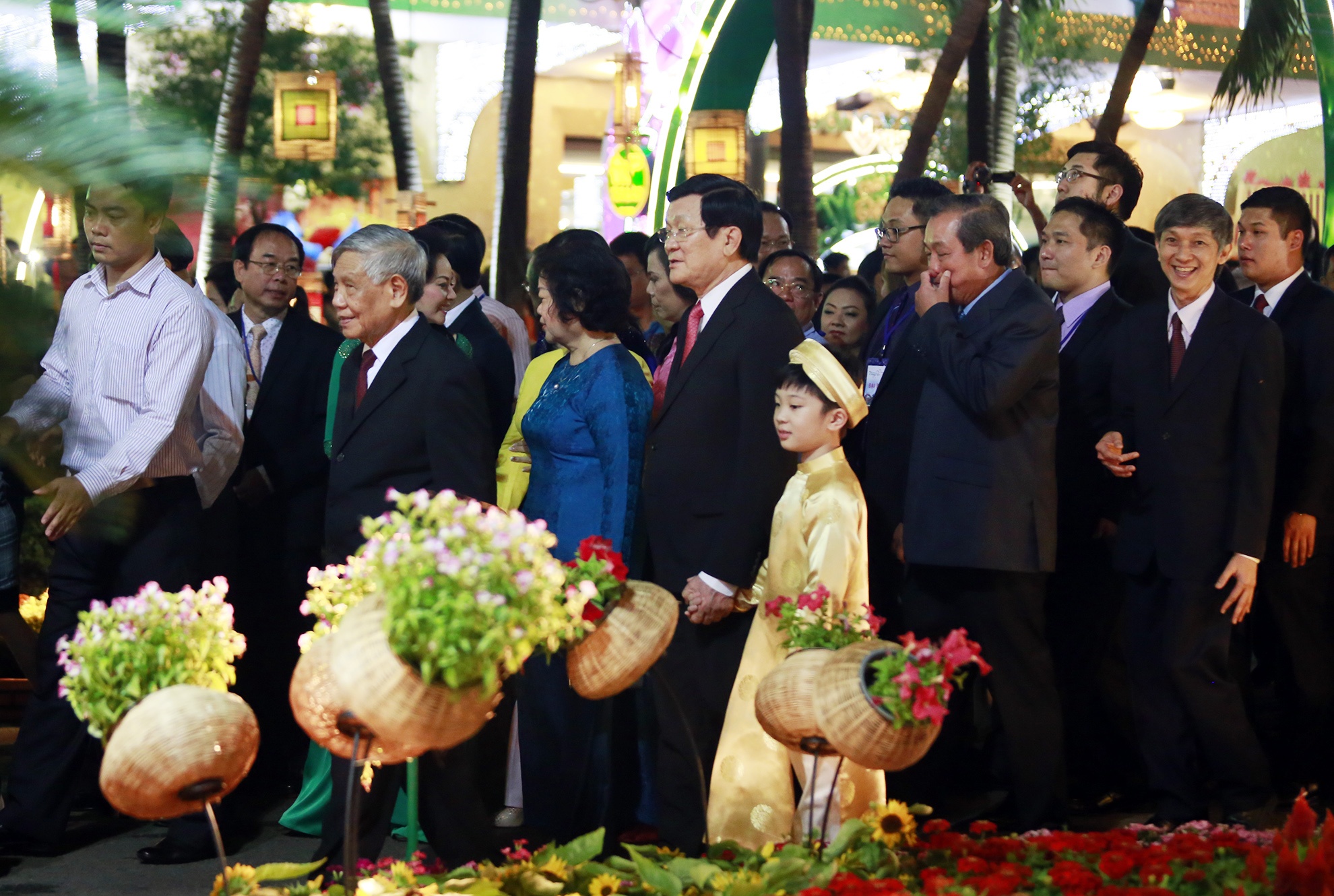 | Sau khi cắt băng, chủ tịch nước Trương Tấn Sang, nguyên Tổng bí thư Lê Khả Phiêu đã ghé thăm đường hoa nổi tiếng này. |