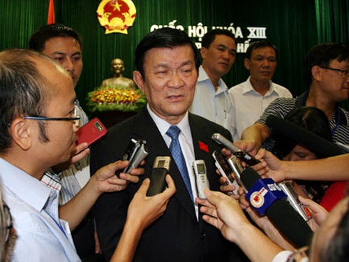 | Chủ tịch nước Trương Tấn Sang trong một lần trả lời báo chí tại Quốc hội. |