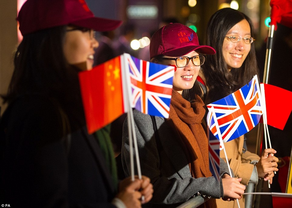 | Sinh viên Trung Quốc du học tại Anh háo hức chào đón chuyến thăm của Chủ tịch Tập Cận Bình tại Anh. Ảnh: PA |