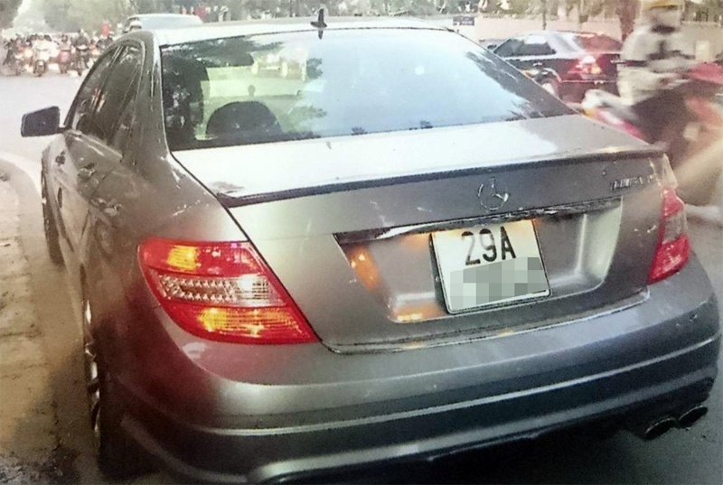 | Chiếc xe đắt tiền bị trộm gương trên phố Lý Thường Kiệt. Ảnh: H.L. |