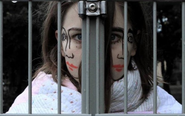 | Hình ảnh gợi lên trong người xem sự ám ảnh về cuộc sống của những cô gái đang cố che đi một nửa con người mình dưới lớp trang điểm vô hồn. |