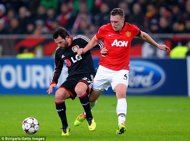 | Phil Jones đảm nhận vị trí tiền vệ phòng ngự ở trận gặp Leverkusen. |