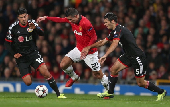 | Tiền đạo Van Persie đá cặp cùng Rooney trên hàng công trong trận MU tiếp đón Leverkusen. |