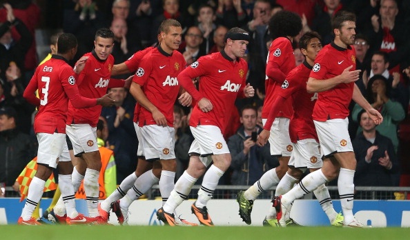 | Niềm vui của Rooney, Van Persie và Shinji Kagawa. |