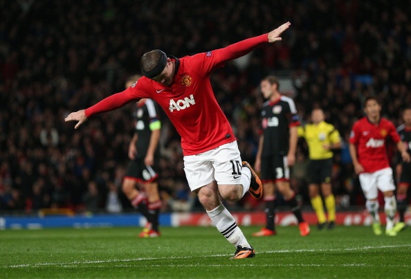 | Rooney vui mừng sau khi ghi bàn mở tỷ số trận đấu ở phút 22. |