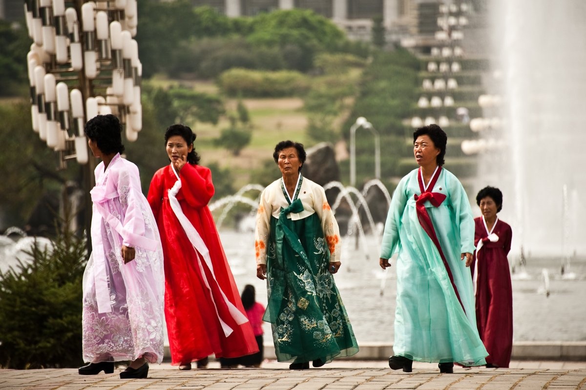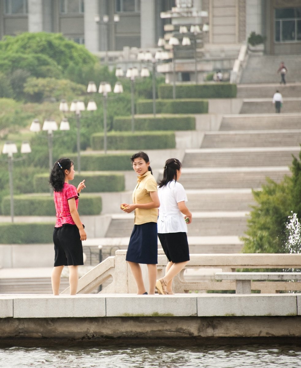 | Phụ nữ Triều Tiên dạo chơi trong công viên. |
