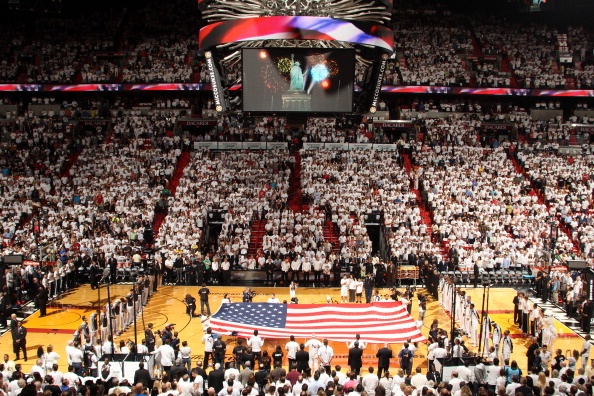 | Hai đội làm lễ chào cờ và hát quốc ca trước khi bước vào Game 4. |