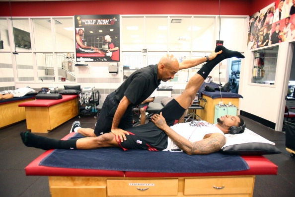 | Udonis Haslem và bài tập khởi động quen thuộc trước trận. |