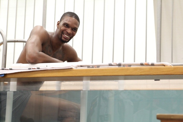 | Chris Bosh ngâm mình trong bồn tắm. |