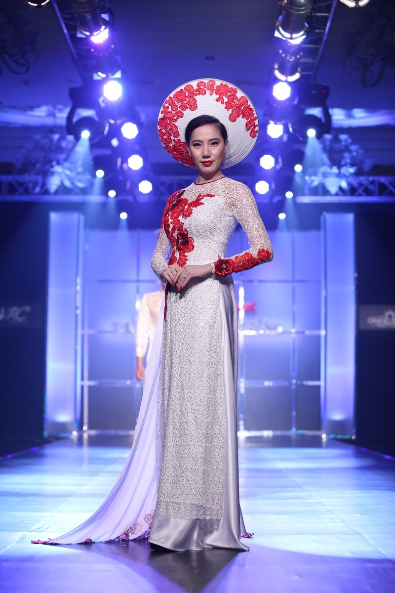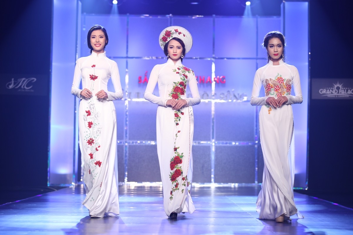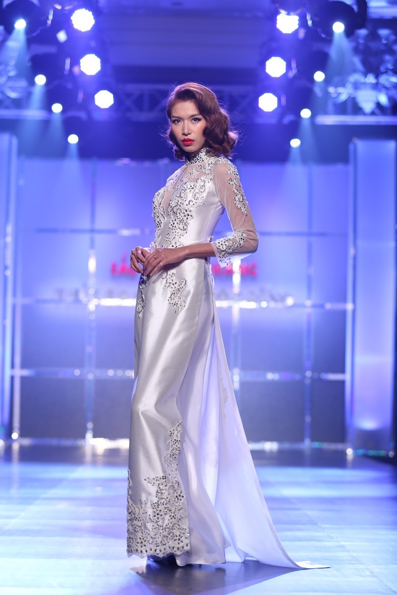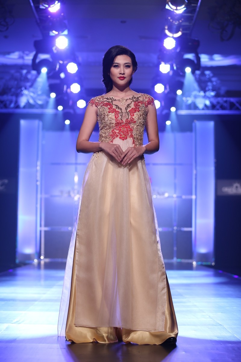 Áo dài Minh Châu giới thiệu BST mang đậm tính ứng dụng. Các đường nét, họa tiết được hòa trộn từ yếu tố cách tân và cổ điển.