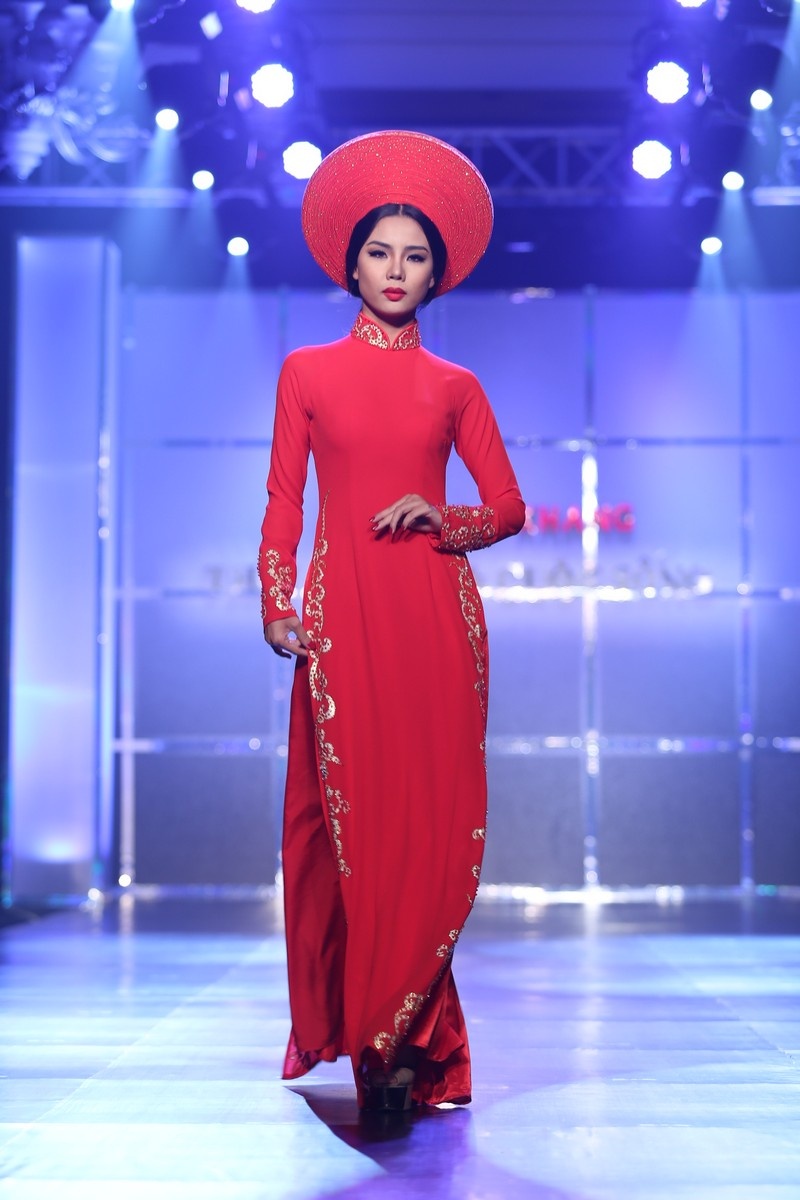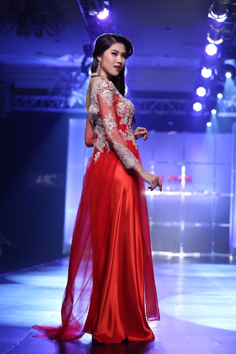 Để lại những ấn tượng xấu khi diện trang phục hở bạo, nữ người mẫu trở nên duyên dáng và thanh lịch trong mẫu áo dài truyền thống của NTK Minh Châu.