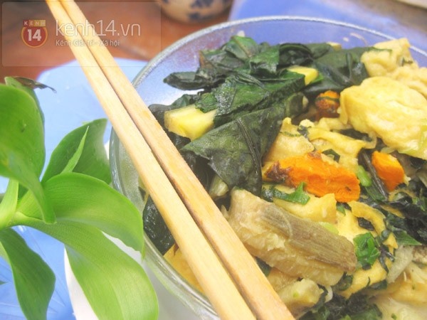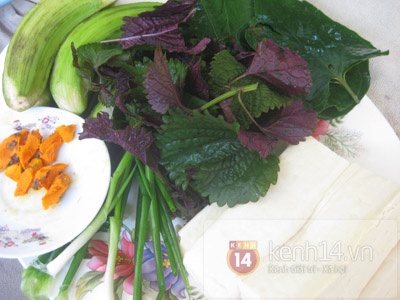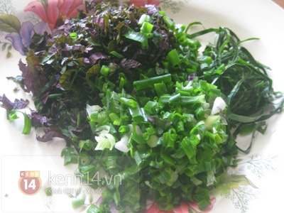 - Cho lá lốt, tía tô và hành tươi đã thái nhỏ vào, ăn ngay khi nóng.