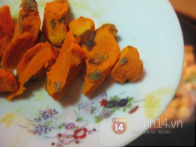 - Thái nhỏ nghệ tươi rồi cho vào cùng để tạo màu cho món ăn thêm hấp dẫn.![]() |