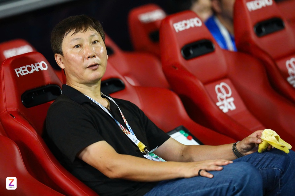 HLV Kim Sang-sik ăn chuối lúc nghỉ ngơi trong trận chung kết bóng đá nam SEA Games 33 tối 18/12. Ảnh: Minh Chiến. |