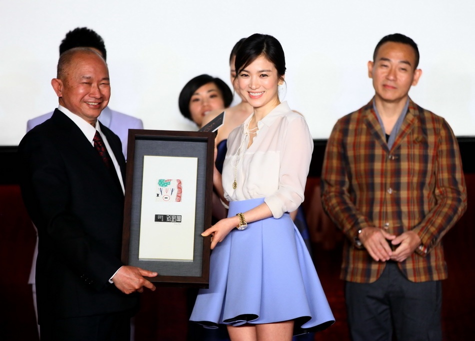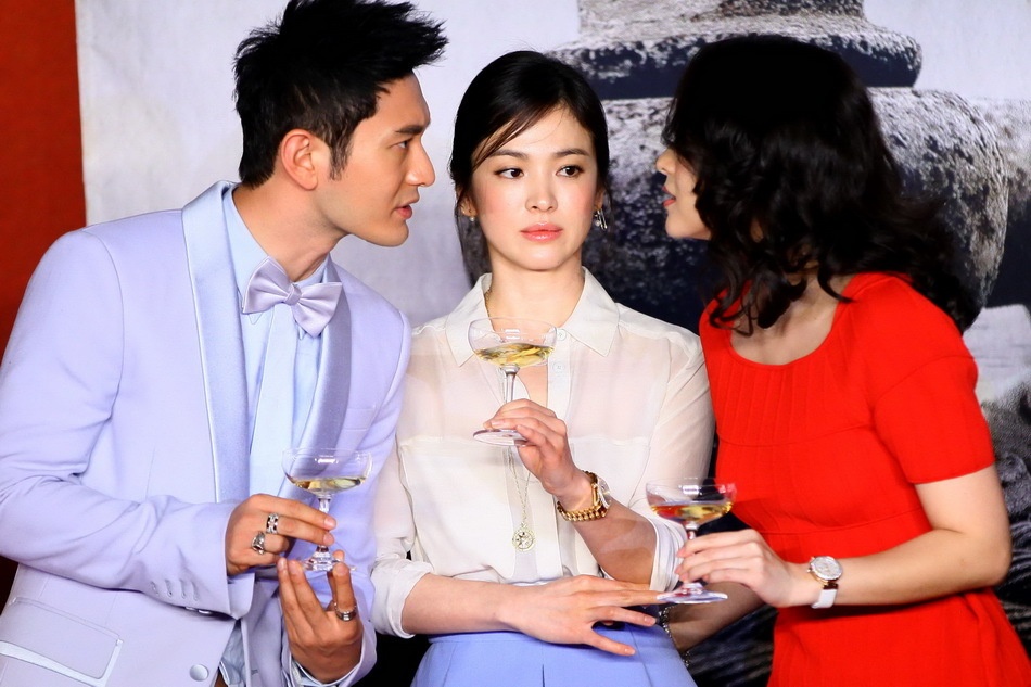 | Huỳnh Hiểu Minh, Song Hye Kyo và Chương Tử Di trò chuyện về những vui buồn trong suốt quá trình cùng hợp tác. |