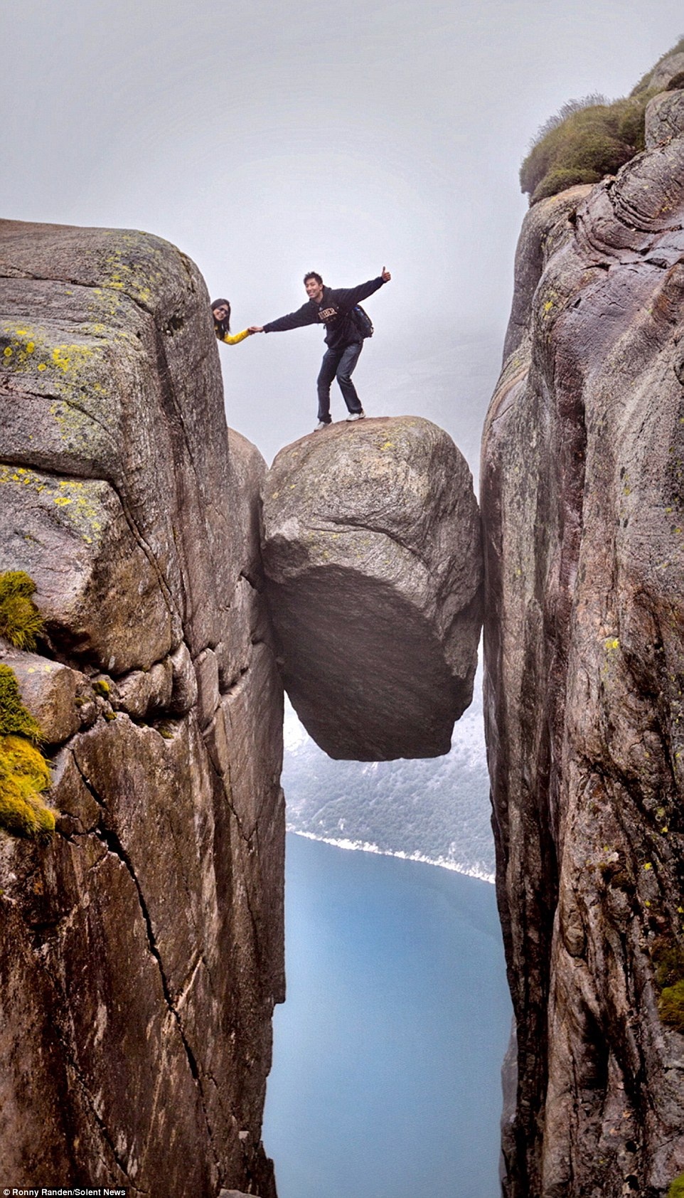 Nhà phát triển phần mềm 39 tuổi Ronny Randen đã ghi lại hình ảnh anh cùng 5 người bạn trong chuyến du lịch để leo lên hòn đá Kjeragbolten (Preikestolen - tên tiếng Anh, còn được gọi là Pulpit Rock). Vị trí này nằm ở độ cao khoảng 243 mét.