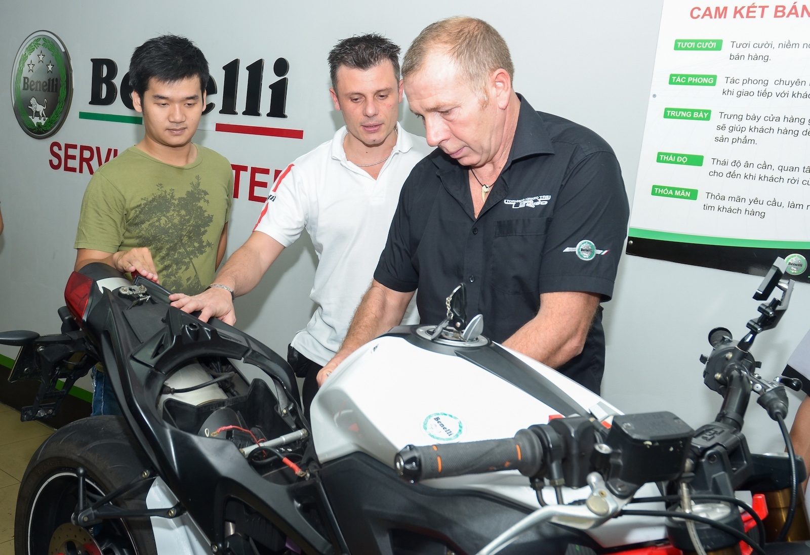 Hai chuyên gia kỹ thuật hàng đầu của Benelli Italia là Cardelini Stefano (giám đốc kỹ thuật) và Lago Stefano (giám đốc phụ trách dịch vụ hậu mãi) đã có mặt tại Việt Nam để tiến hành kiểm tra từng chiếc xe Benelli của khách hàng.