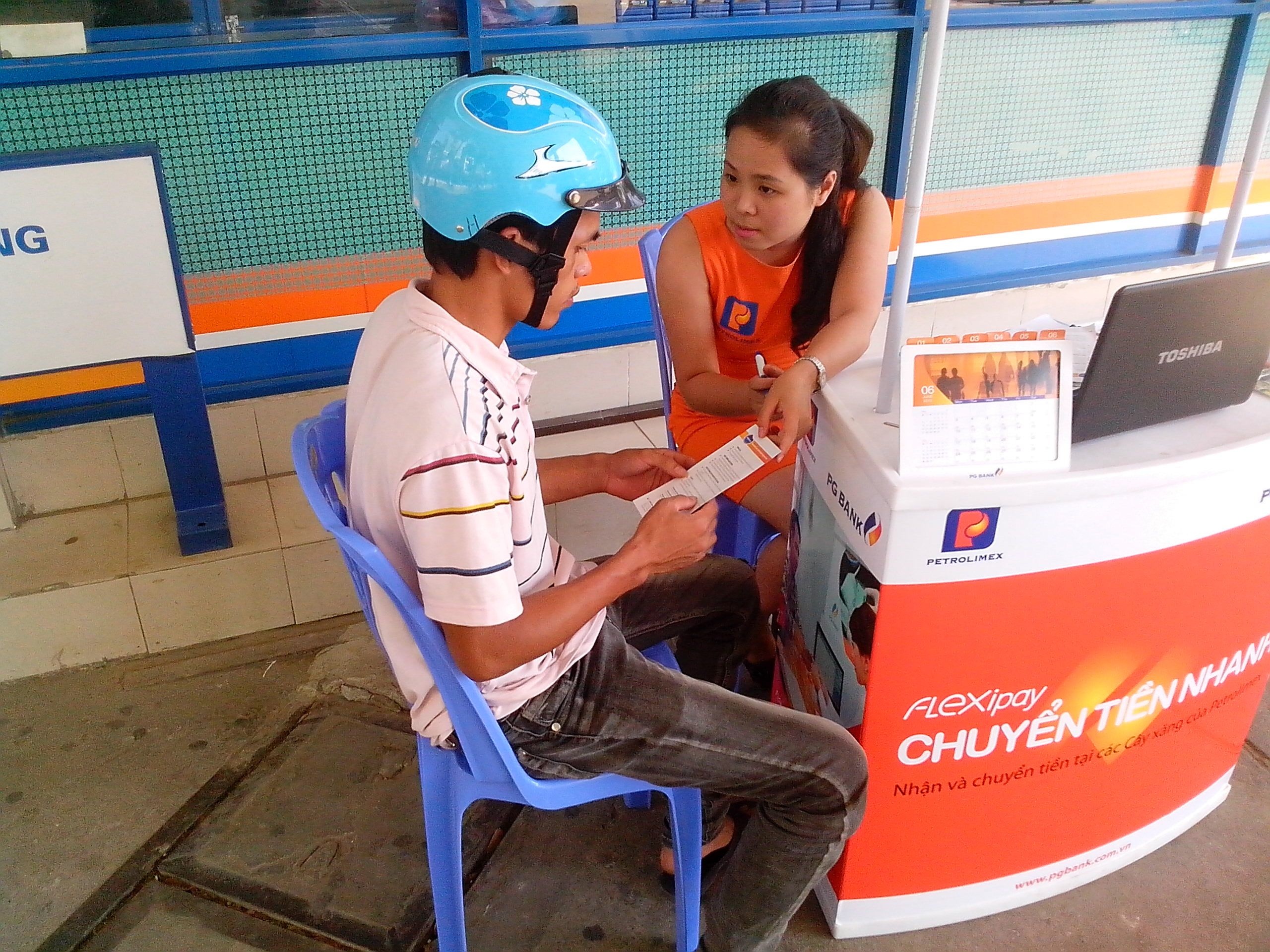 Tiến Mạnh - sinh viên năm 2 trường đại học Cần Thơ cho biết, bố bạn làm việc ở ngoài Bắc, tại khu công nghiệp Phố Nối, Hưng Yên. Vì làm việc dưới phân xưởng nên bố bạn rất hiếm khi được ra ngoài vào giờ hành chính. Khi biết được cây xăng ở gần khu công nghiệp có dịch vụ chuyển tiền nhanh, bố bạn đã phải tranh thủ những lúc ngoài giờ qua các trạm xăng để gửi tiền cho con. Đây là một giải pháp vô cùng hữu hiệu với những người không sống ở thành thị, không tiện di chuyển đến các phòng giao dịch của ngân hàng.