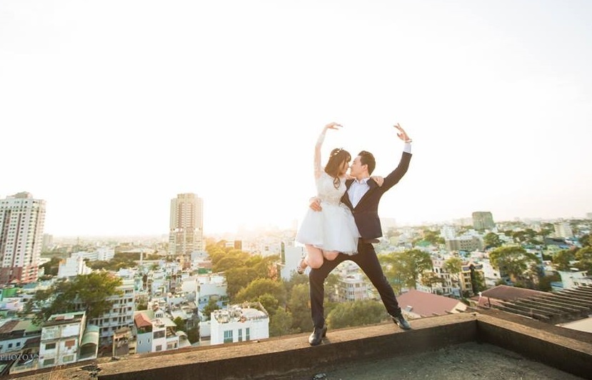 | Ảnh cưới độc đáo của cặp đôi đam mê nhảy. |