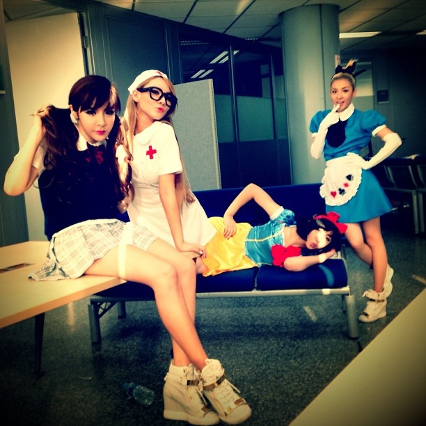 | Nghịch ngợm với các thành viên 2NE1 trên trường quay clip. |