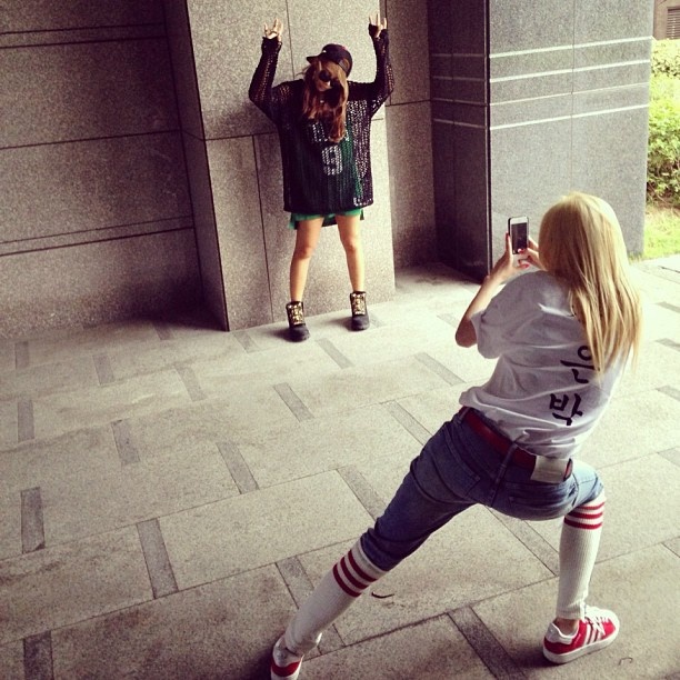 | Cô chị Dara tạo dáng "độc" chụp ảnh cho CL. |