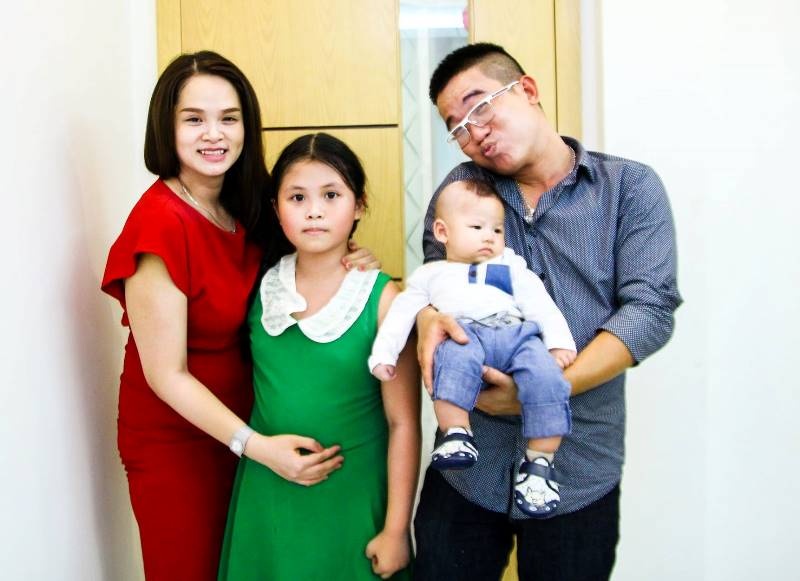 | Gia đình hạnh phúc của 8X - Cam Long. Ngoài bé Thiên Minh, anh còn có một con gái năm nay học lớp 4. |