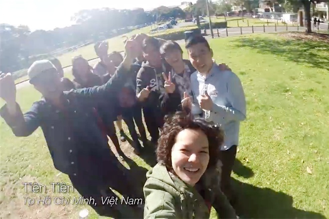 | Tiên Tiên đại diện cho giới trẻ Việt Nam tại TP HCM góp mặt trong clip ý nghĩa của hội du học sinh trên khắp thế giới. Ảnh cắt từ clip. |