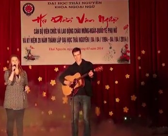 | Thầy cô hát trong Hội diễn văn nghệ, ĐH Sư phạm Thái Nguyên. |