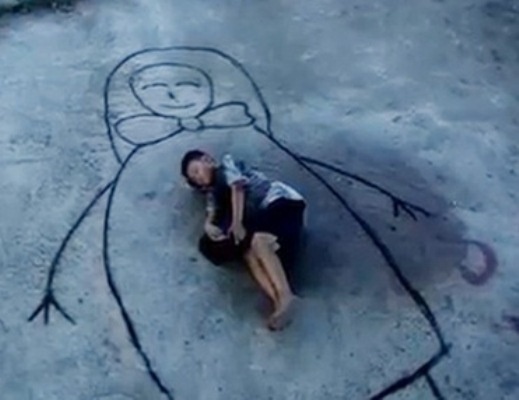 | Khoảnh khắc Kha nằm ôm hình vẽ người mẹ ám ảnh người xem trong clip. |