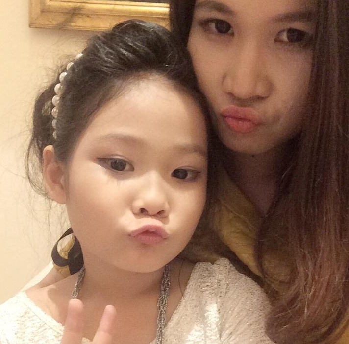 | Thiên Trang tạo dáng đáng yêu cùng với mẹ. Ảnh: NVCC. |