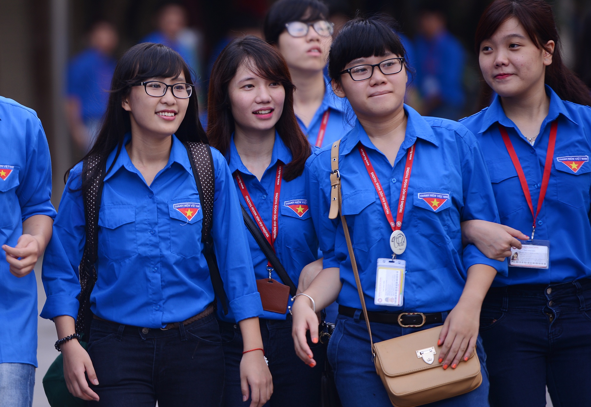 | Nụ cười rạng rỡ dưới nắng hè oi ả của các nữ sinh Ngoại thương.