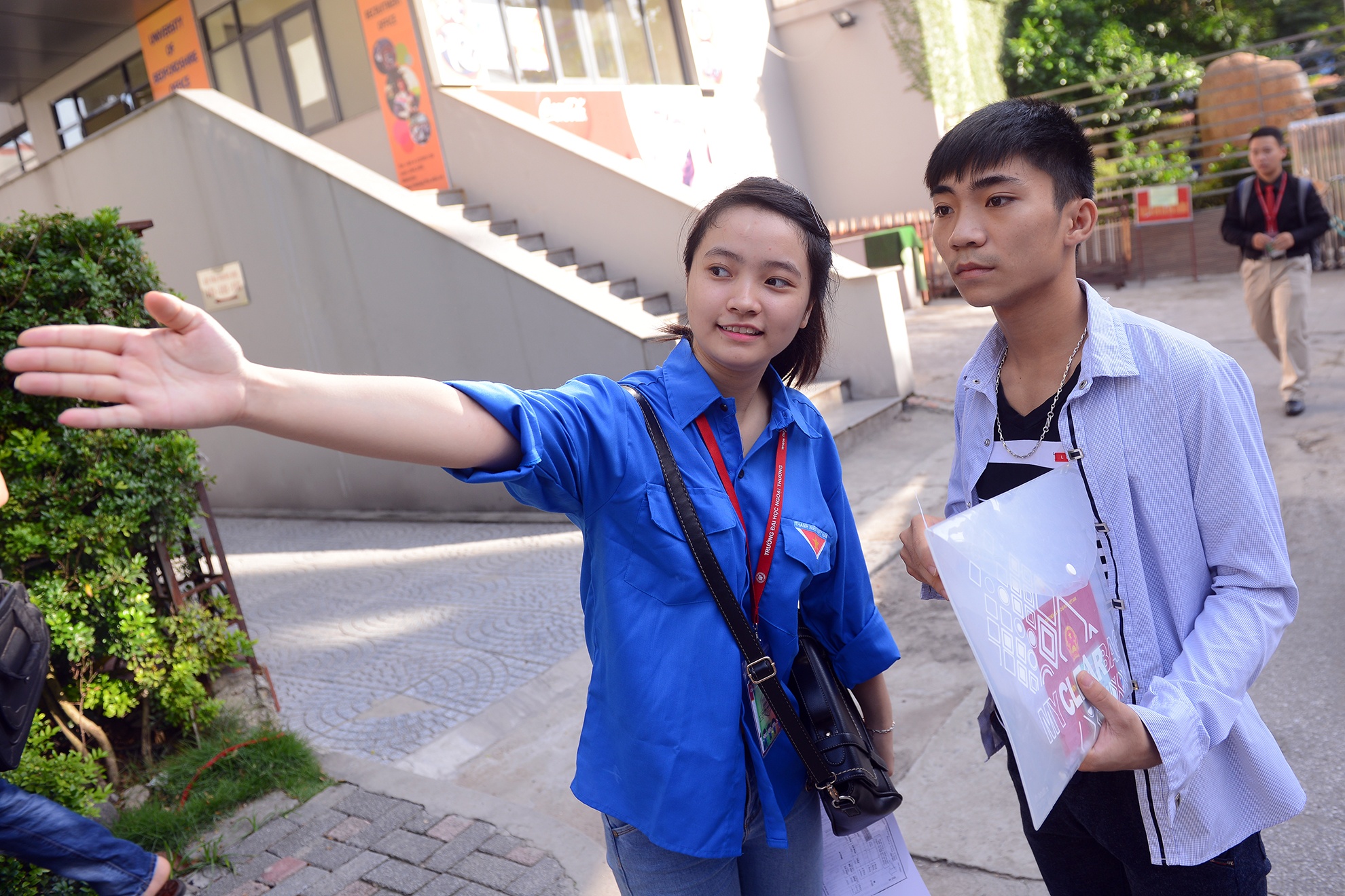 | Các bạn phía trong chỉ dẫn tận tình cho các thí sinh vao đúng phòng, đúng giờ, cất giữ an toàn đồ đạc của thí sinh trước khi vào phòng.