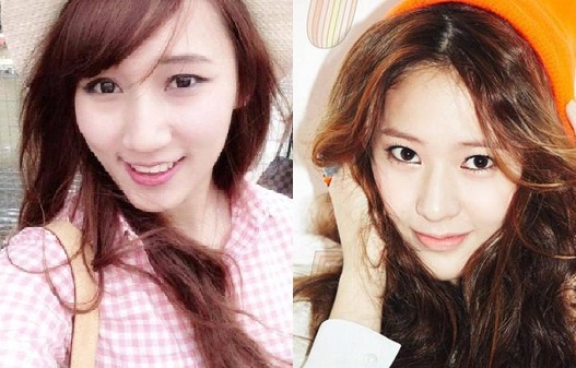 | Nhiều người nhận xét Mai Nhi (bên trái) có vẻ đẹp giống cô gái Hàn Quốc Krystal thuộc ban nhạc f(x) (bên phải). |