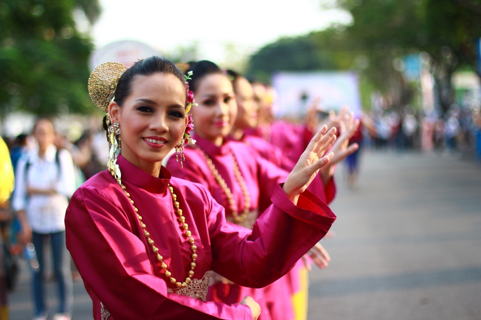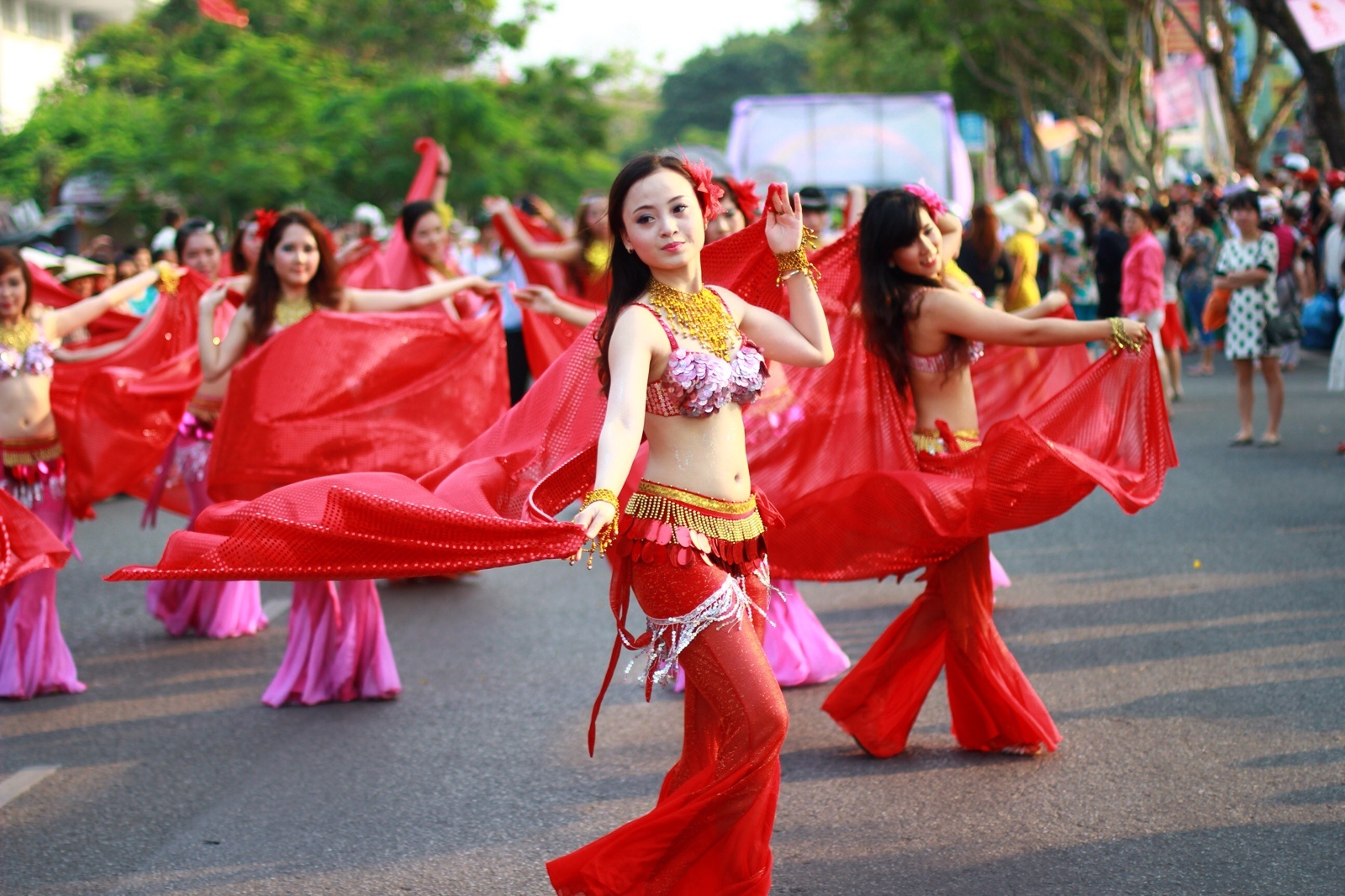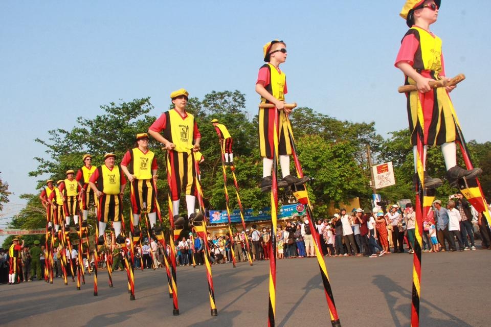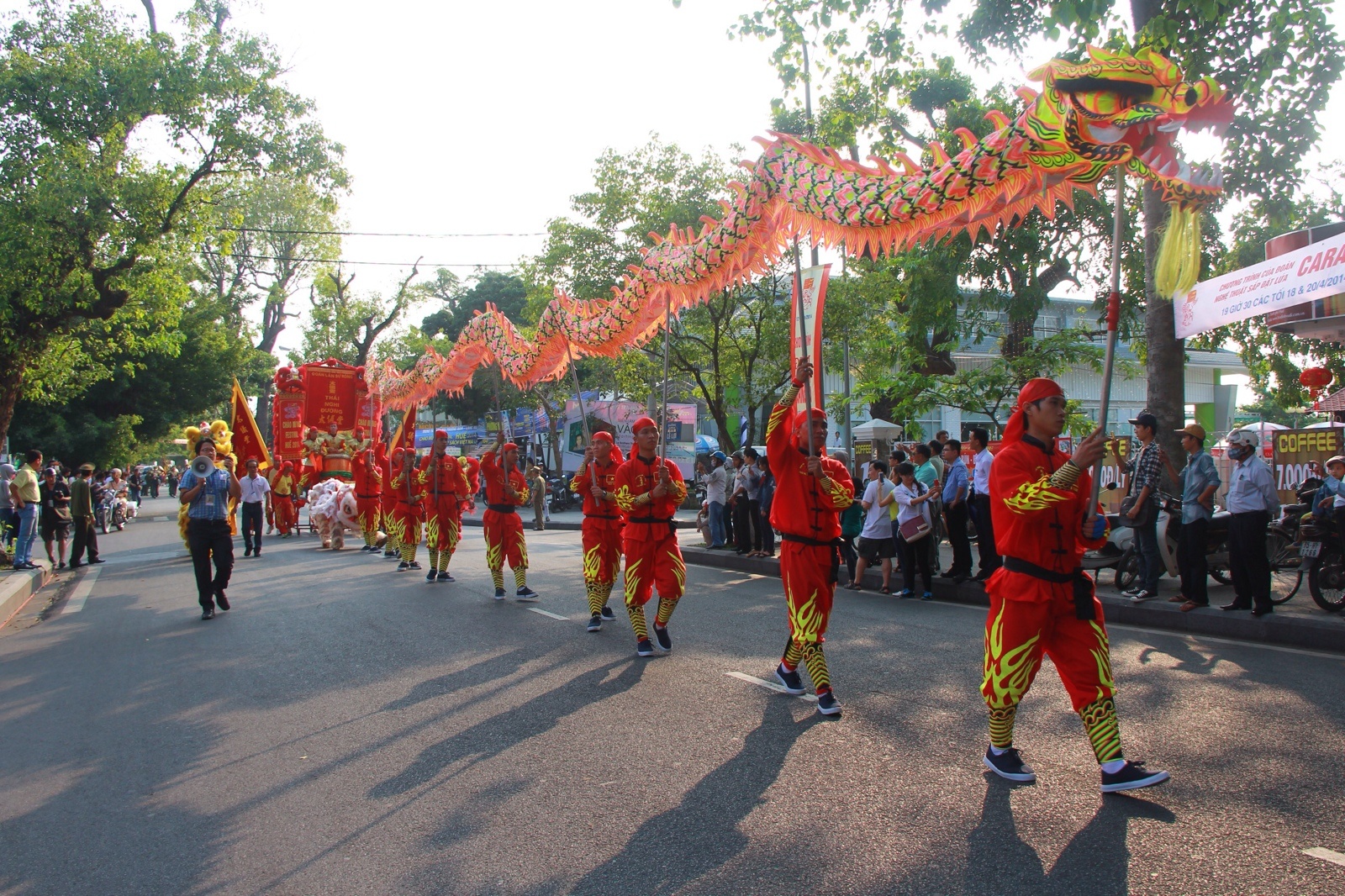 | Chương trình quảng diễn đường phố "Di sản và sắc màu văn hoá" trên đường Trần Hưng Đạo, Huế diễn ra các buổi chiều 14 và 15/4. Đoàn Việt Nam góp mặt với nghi lễ rước và múa rồng. |