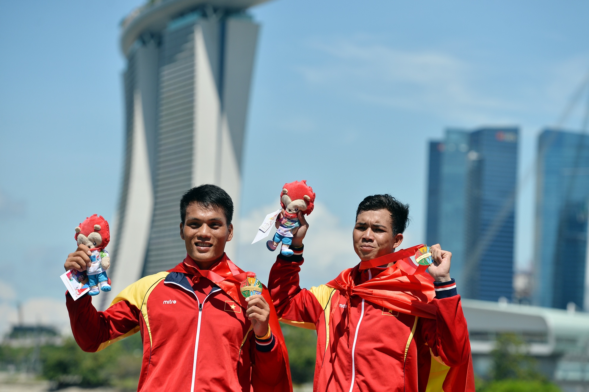 | Nguyễn Văn Đức (trái) và Nguyễn Văn Tuấn giành HCB nội dung đôi nam M2 500 m. |