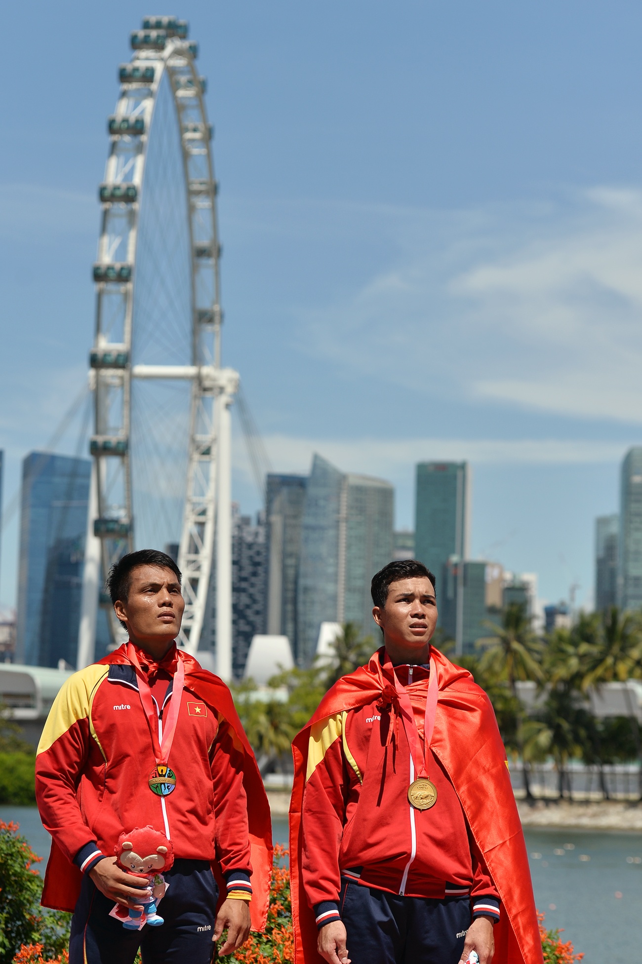 | Hai trong số các VĐV thi đấu thành công môn rowing sáng 11/6 là Phạm Thị Huệ và Lê Thị An. Cặp đôi này đoạt HCV ở nội dung 500 m đôi nữ với thành tích 1 phút 38 giây 87. |