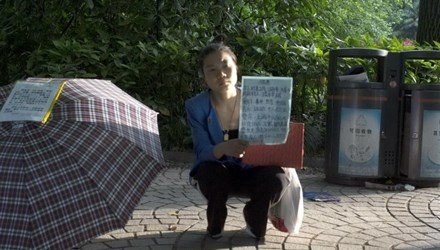 | Nội dung tấm biển đề: "Tôi sinh tháng 2/1985 tại Hồ Bắc. Tôi có một bằng đại học. Cha mẹ tôi sống tại làng Bingcun. Lý tưởng sống của tôi là theo đuổi sự xuất sắc. Sở thích đọc sách, viết truyện, nghe nhạc, chơi thể thao. Ngoài ra, tôi có thể sử dụng thành thạo máy tính và có công việc kinh doanh riêng". |
