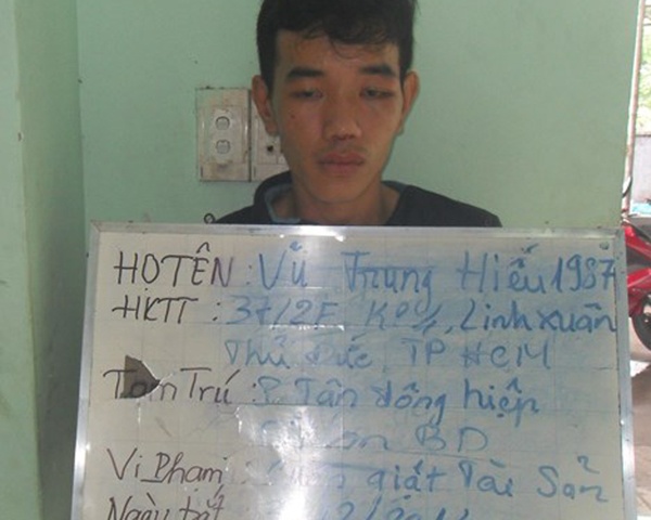 Theo thông tin ban đầu, 8h ngày 3/12, Vũ Trọng Hiếu điều khiển xe máy lưu thông trên đường ở phường Bình Hòa (thị xã Thuận An, Bình Dương) để tìm kiếm "con mồi".