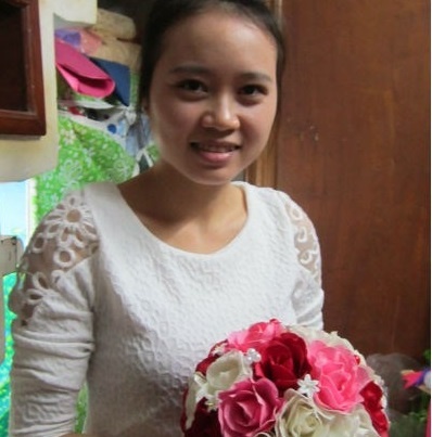 | Chân dung cô chủ sinh năm, 1990 với sản phẩm hoa đất sét. |