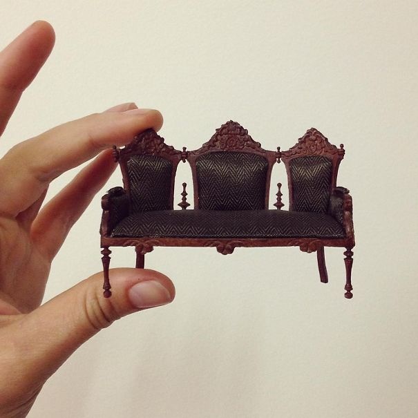 Emily theo học ngành kiến trúc và bắt đầu thiết kế những đồ nội thất có kích thước tí hon như trong những ngôi nhà búp bê. |