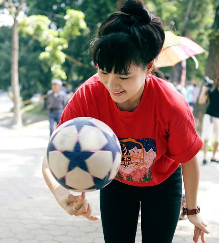 | Đây cũng chính là động lực khiến cô thực hiện những clip trổ tài tâng bóng, múa bóng điêu luyện, được dân mạng truyền tay nhau thời gian qua. |