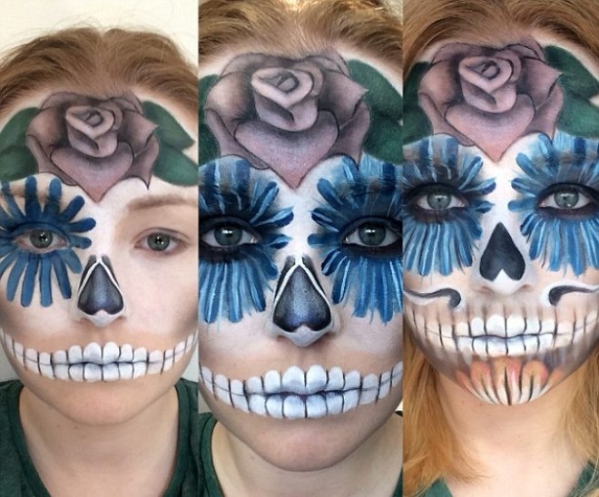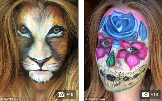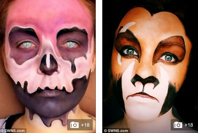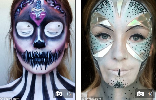 | Cô gái 21 tuổi luôn sáng tạo ngay trên khuôn mặt của mình. |